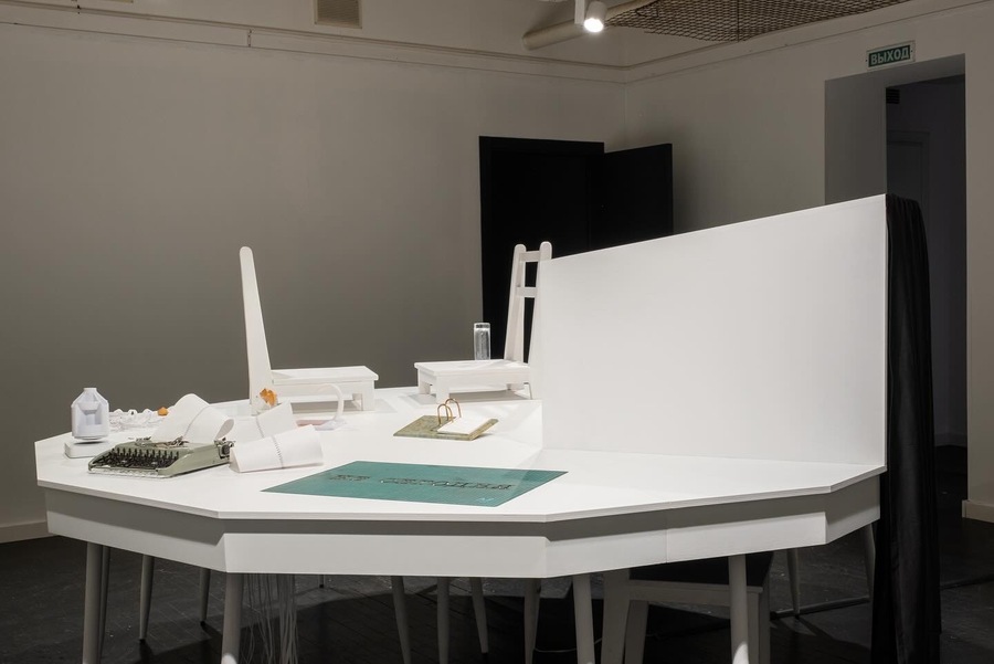 Антон Мороков известен, в первую очередь, как художник-график. В своей новой инсталляции он обращается к темам одиночества, монотонности и абсурда современной жизни. Работа представляет собой стол, в границах которого можно существовать — работать, отдыхать, обедать, играть и спать, — не соприкасаясь с внешним миром. Каждый проведенный здесь день похож на предыдущий и погружает человека в ситуацию бесконечной рутины.
